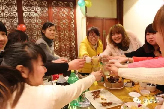开席吃饭,哈哈,家人们谈笑风生,举杯畅饮,共同庆祝2016!